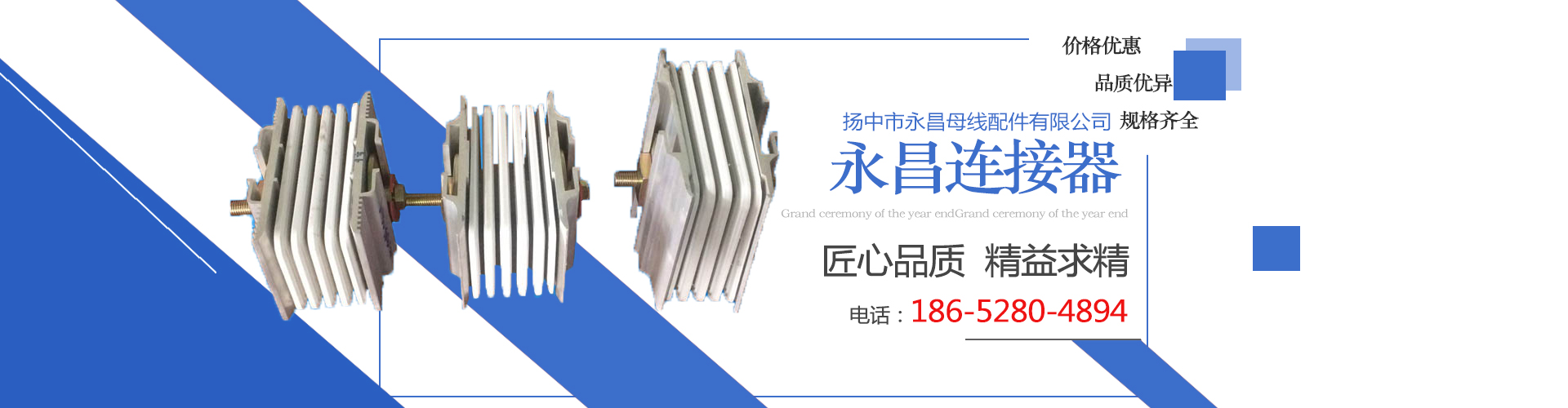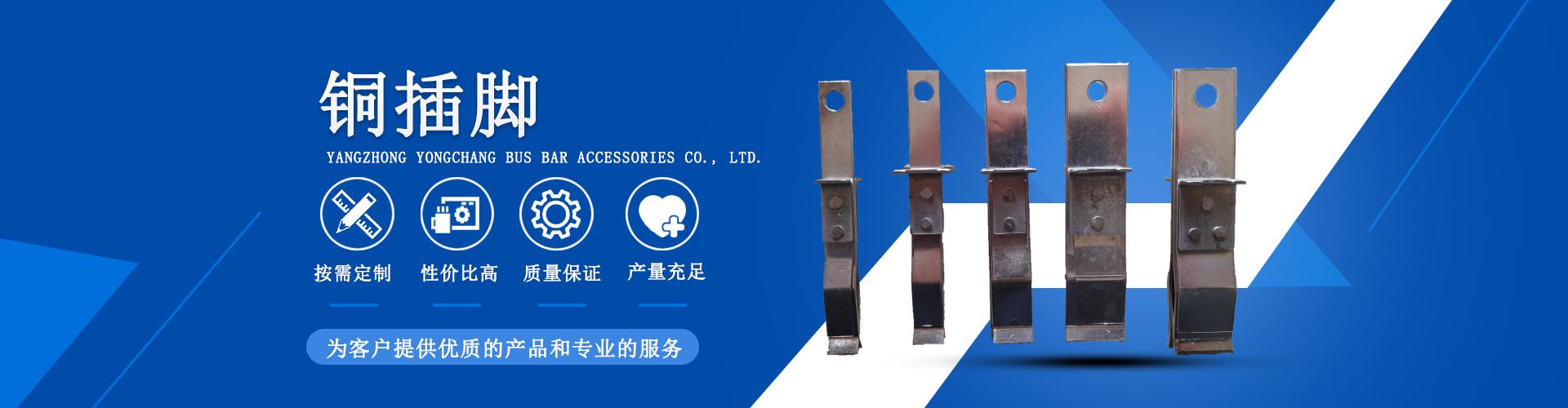 揚(yáng)中市永昌母線配件有限公司專(zhuān)業(yè)生產(chǎn)銷(xiāo)售母線、橋架配件及其它電氣配套附件。產(chǎn)品系列全、產(chǎn)業(yè)鏈完整。公司現(xiàn)主要生產(chǎn)各種型號(hào)母線槽絕緣配件、母線快速連接器、母線接頭器、絕緣支架、絕緣隔板、母線插口、母線插座、母線槽銅插腳、絕緣螺栓、熱縮套管、橋架配件、橋架扣鎖、母線槽同插腳、母線槽接頭器、母線槽隔相塊等,品種齊全,交貨及時(shí)!